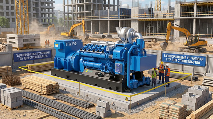 При строительстве жилых микрорайонов, логистических комплексов или производственных цехов на этапе нулевого цикла часто нет подключения к центральным сетям. Дизельные генераторы шумны, дороги в эксплуатации и вредны для экологии. ГПУ, работающая на магистральном газе или СПГ (сжиженном природном газе), становится идеальным решением:
